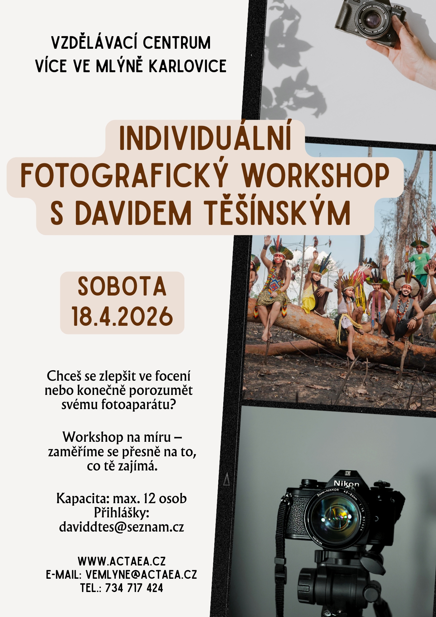 Chceš se posunout v tom, jak fotíš, nebo se konečně naučit rozumět svojí zrcadlovce či bezzrcadlovce? Na individuálním workshopu se zaměříme přesně na to, co tě zajímá – ať už jde o základy práce s fotoaparátem, postprodukci, nebo kreativní přístup k fotografii.