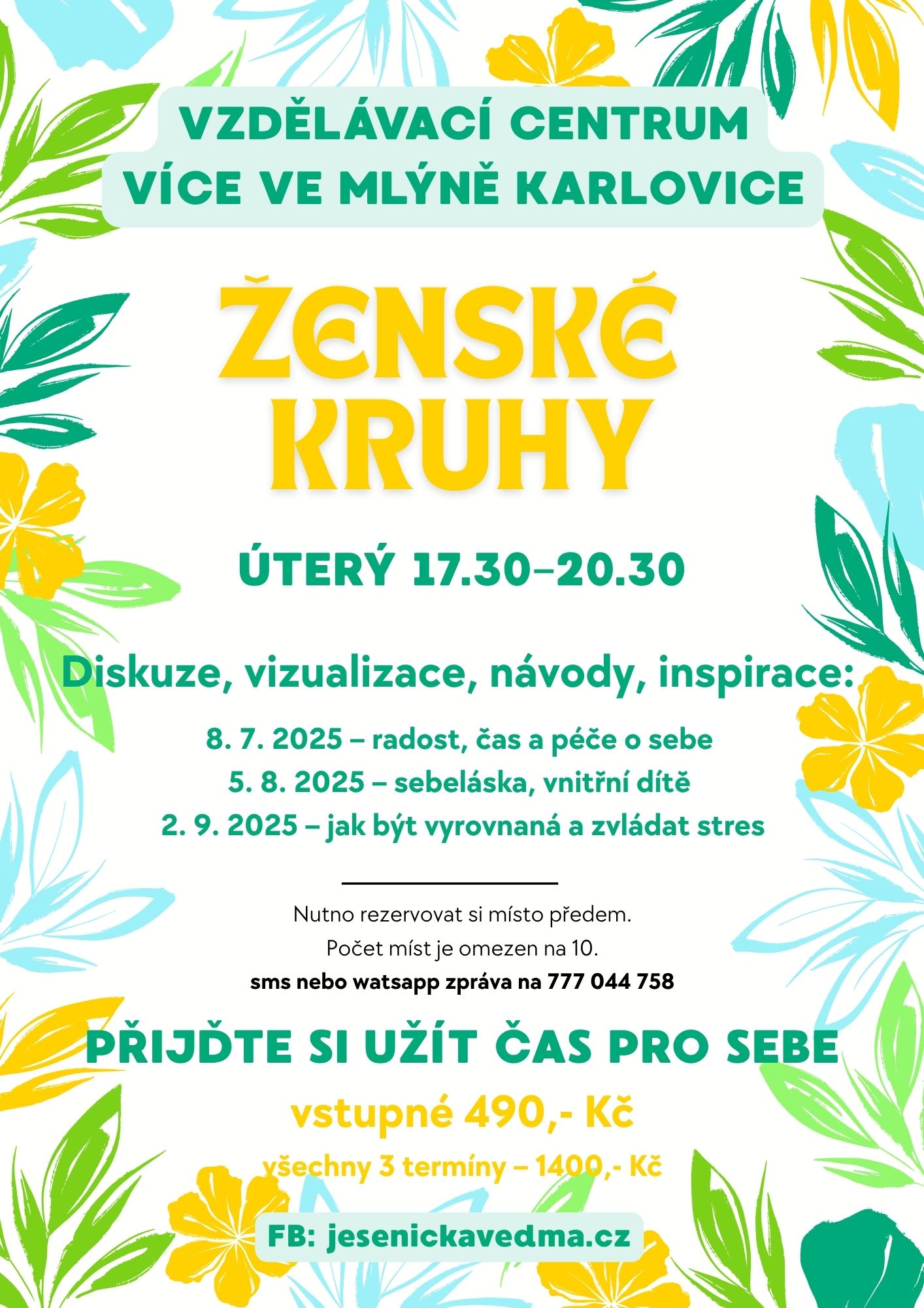Setkání proběhnou vždy v úterý, 8. 7., 5. 8. a 2. 9. 2025, od 17.30 do 20.30 ve VÍCE Ve mlýně.