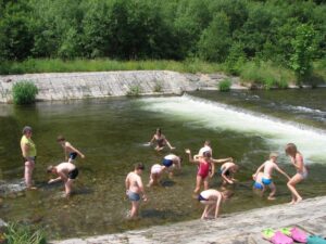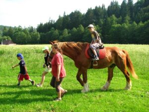 V červnu jsme zajistili pobyt s programem pro 40 dětí ZŠ Studénka a 17 dětí ZŠ Služovice v Pensionu Iris. Díky příznivému počasí probíhala i dopolední výuka venku. Odpoledne následovaly ekohry, soutěže a vycházky. Navštívili jsme nedalekou Farmu Karlovice, kde si děti vyzkoušely, jak se starat o zvířátka a povozily se na koních. Děti prozkoumaly bunkry v okolí a dozvěděly se, proč byly postaveny. Děti soutěžily v poznávání stromů, poznávání stop zvířat, proběhla stopovací soutěž v lese s plněním různých úkolů. V rámci pobytů děti navštívily také sklárny ve Vrbně, kde mohly shlédnout a vyzkoušet jak se vyrábí historické lesní sklo typické pro zdejší oblast. Navštívily také významné jesenické lázně Karlovu Studánku, hrad Freudenstein, přírodní zajímavost Mořské oko či minigolf v Karlovicích a mnoho dalšího.