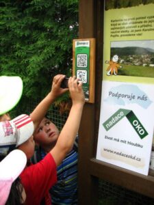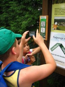 Děti si také v rámci nového projektu „Jeseníky v mobilu“ mohly vyzkoušet on-line informační systém, který aktuálně realizujeme v Jeseníkách, především v oblasti Pradědu a na Vrbensku. V terénu jsou umístěny malé tabulky, tzv. tagglisty, s kódem, který vás po vyfocení mobilním telefonem pomocí jednoduché aplikace propojí s webovou stránkou a zobrazí informace o daném místě. Principem je schopnost mobilních telefonů číst za pomoci jednoduché aplikace dvourozměrné TAGGY, propojit je s webovou adresou a stáhnout požadovaný obsah do mobilního telefonu, kde si jej návštěvník přečte, může si jej uložit a doma znovu přečíst nebo s ním jinak pracovat. Systém je využíván například i v průmyslu, dopravě, v zoologických zahradách, a jinde. Projekt je podpořen z programu Pro budoucnost Nadace OKD.
