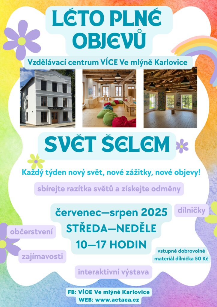 Předposlední týden ve VÍCE Ve mlýně prozkoumáme svět vody. Od středy 20. do neděle 24. srpna 2025 pro vás bude připravena dílnička s koloběhem vody na Zemi, aktivity spojené se zajímavostmi ze světa vody a nebudou chybět také roztomilí vodní živočichové!