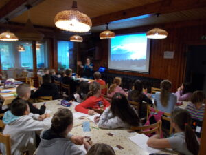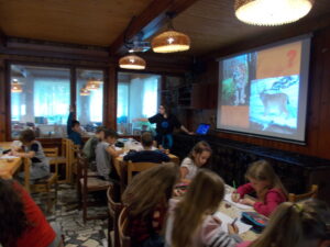 Ve středu 16. 10. 2019 jsme přednášeli dětem ze ZŠ a MŠ U Lesa z Karviné o vzácné přírodě Jeseníků. Přednáška se konala v Karlově, kde děti (3.-6. třída) se svými učiteli trávily čas na společném pobytu. Děti se dozvídaly, i si zapisovali zajímavosti o zdejších lesích, o vzácných rostlinách či s jakými živočichy se mohou potkat.