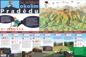Po nenáročné trase vás na vrchol Pradědu dovede Naučná stezka Se Skřítkem okolím Pradědu. Po cestě vás na 8 zastaveních čekají informace o přírodě a historii území Národní přírodní rezervace Praděd, s odbočkami na chatu Barborku a Švýcárnu. Trasou vás provede Skřítek z Pradědovy družiny.