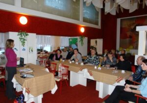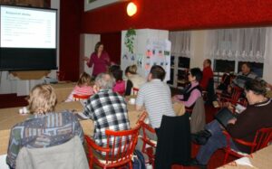 Ve čtvrtek 18. 2. 2010 proběhlo v Pensionu Schaumannův dvůr setkání veřejnosti k Naučné stezce Historií a přírodou Karlovic. Mezi účastníky byli kromě občanů i obecní zastupitelé, učitelé a děti Základní školy Karlovice a zástupci Muzea Bruntál, Spolku přátel Vrbenska a Lesů ČR. Účastníci byli informováni o dosavadním průběhu realizace projektu a také o dalším postupu. Detailně byla projednána trasa naučné stezky, umístění jednotlivých informačních panelů a jejich obsah. Byly představeny návrhy některých panelů, které dělaly děti ze základní školy, a také grafický návrh informačního panelu od místní grafičky Ivety Dučákové.
