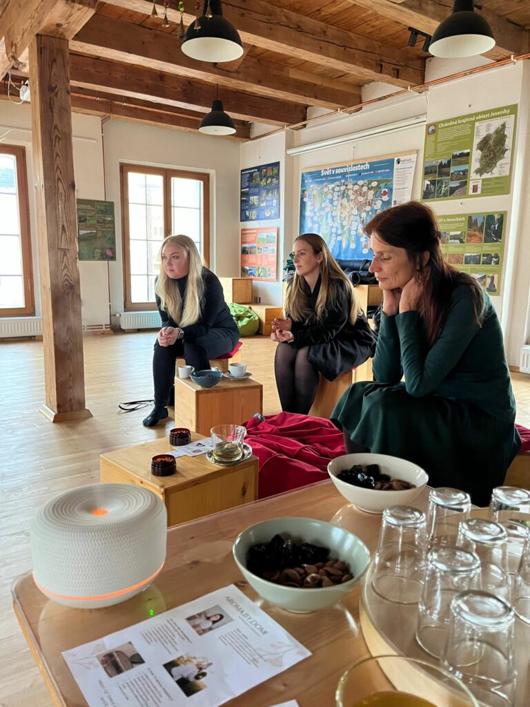 V úterý jsme přivítali Dominiku Pořízkovou, která naše prostory doslova provoněla. Účastnice jejího Voňavého sedánku se ponořily do tajů aromaterapie a odcházely nejen s úsměvem, ale i s novou inspirací pro domácí kouzlení s vůněmi.