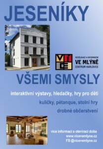 Vzdělávací a informační centrum VÍCE Ve mlýně Karlovice se zaměřuje zejména na programy pro děti všeho věku. Naším cílem je předat návštěvníkům informace o přírodě a krajině a historickém vývoji Jeseníků a našeho regionu.